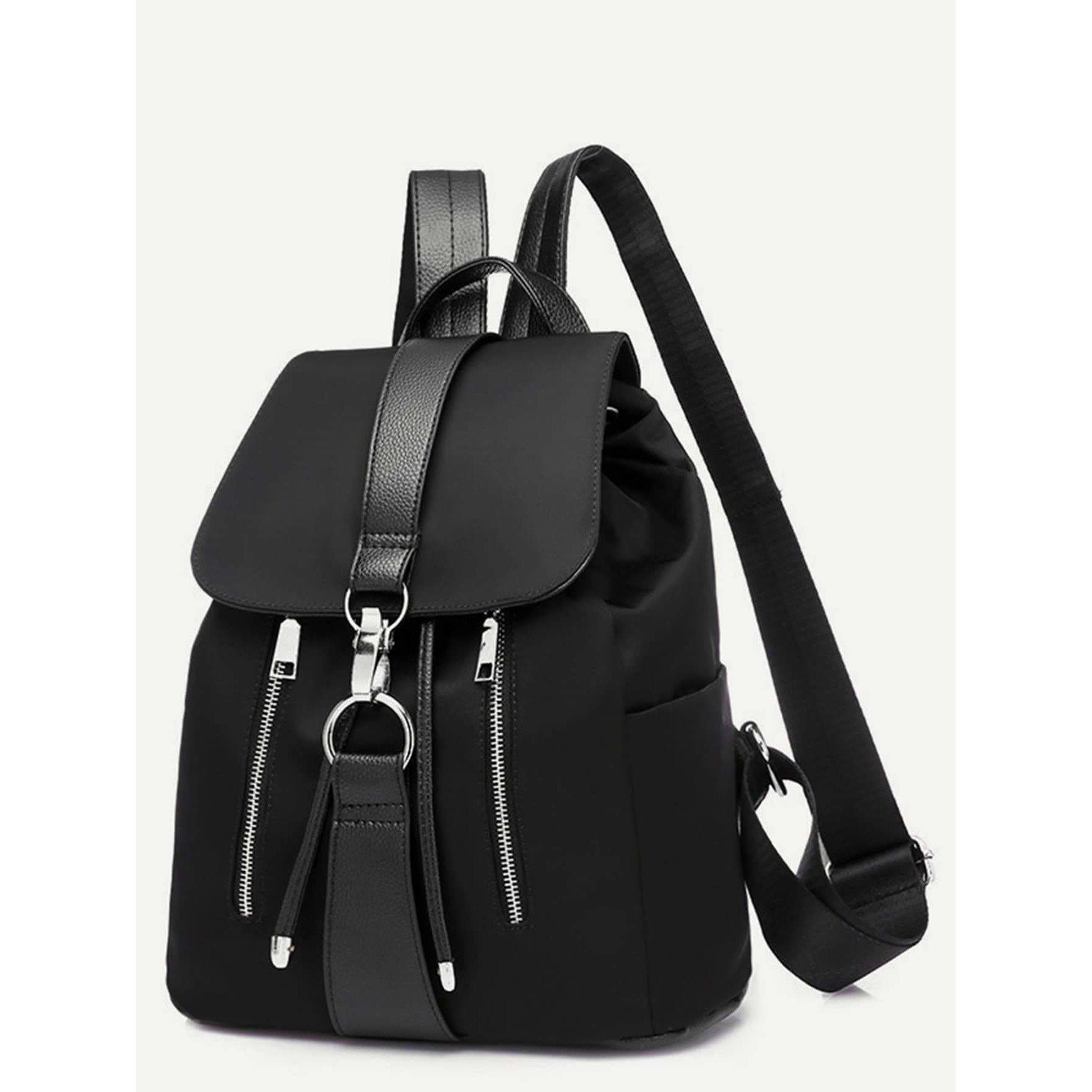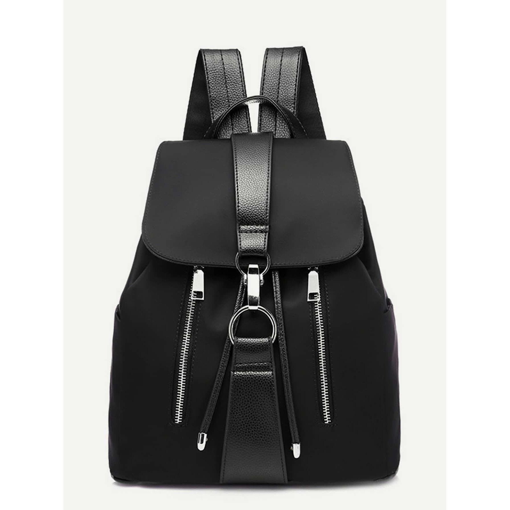 Metal Ring Detail Zipper Backpack